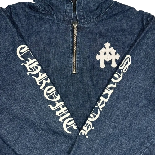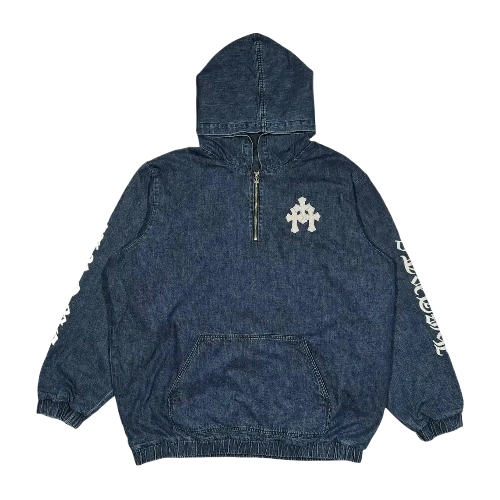 Chrome Hearts Triple White Cross Patch Half Zip Denim Hoodie