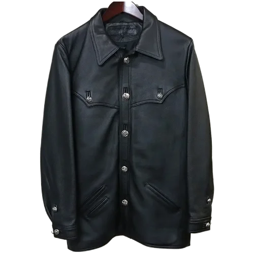 The Claw Button Hunting Chrome Hearts Leather Jacket Black represents the pinnacle of luxury outerwear, blending rugged heritage design with the unmistakable attitude of Chrome Hearts. Crafted from premium, full-grain black leather, this jacket offers a rich texture, exceptional durability, and a commanding presence that only improves with age. The natural grain of the leather gives the jacket a bold, structured silhouette, making it an undeniable statement piece in any wardrobe.