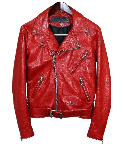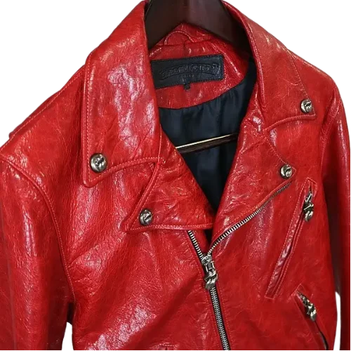 Rolling Stones JJ Dean Chrome Hearts Biker Jacket Red