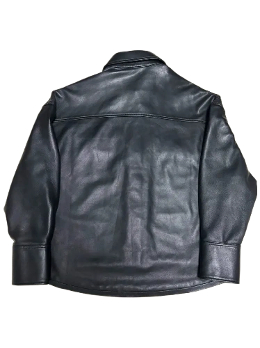 The Shirt Style Chrome Hearts Leather Jacket with Silver Buttons reimagines classic tailoring through the lens of Chrome Hearts’ rebellious luxury. With its structured shirt-style design, it delivers a clean silhouette while staying true to the brand’s bold identity.